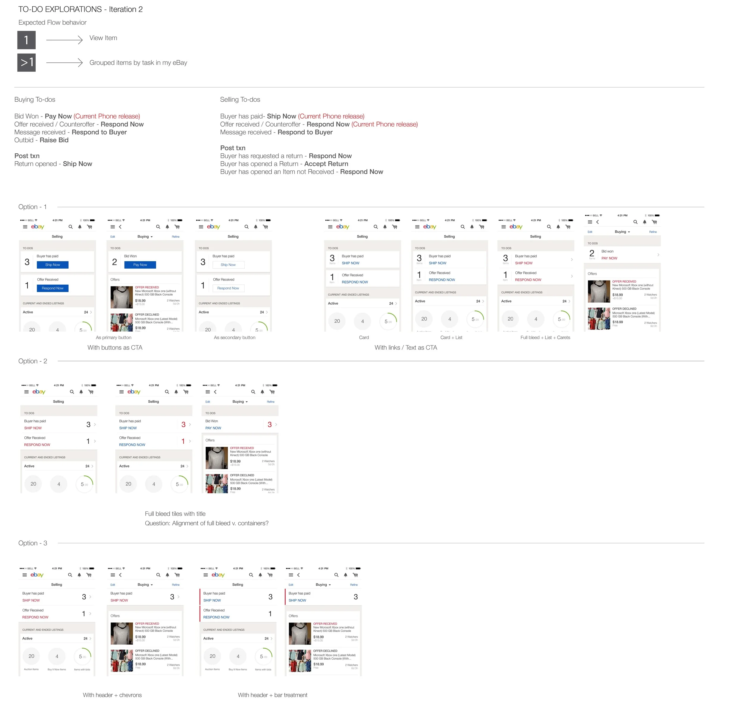 The messaging was proven to be critical and To Dos were explored for both buyers and sellers in conjunction with item cards. Numerous competitive audits were done as well.